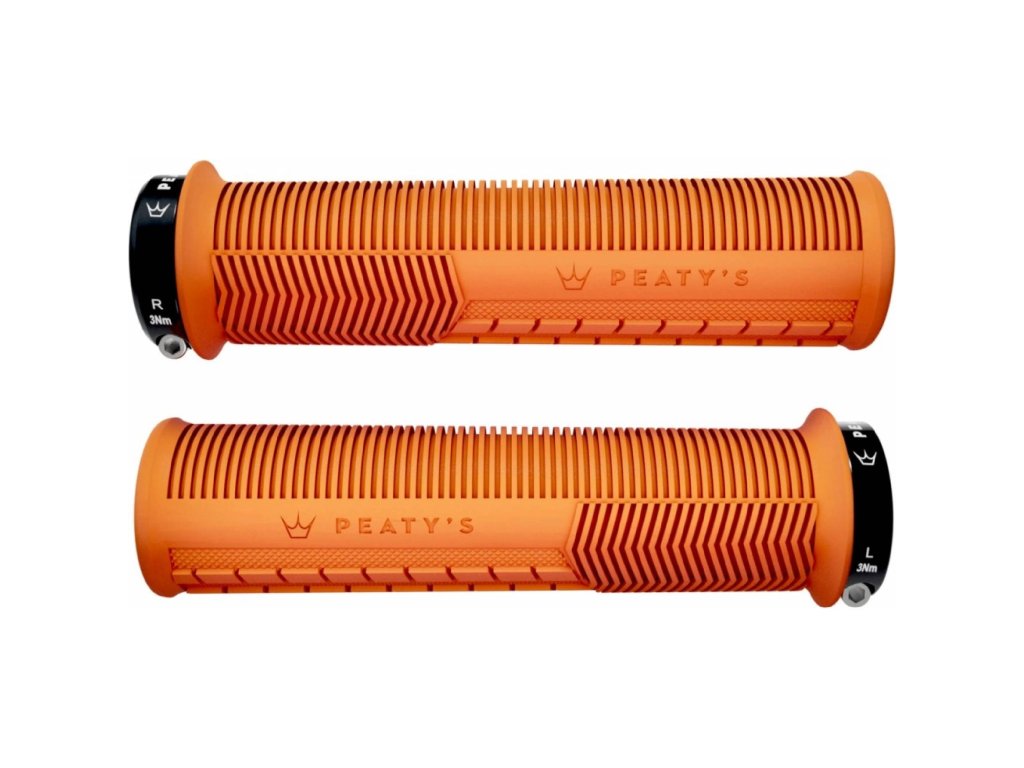 Gumové gripy MTB Peaty’s Monarch Mushroom Thick – Mango Komfortní MTB gripy s měkkou směsí 20A